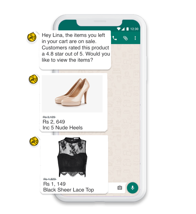 Product recommendations are a great way to increase your average order value and boost revenue. Leverage WhatsApp to send product recommendations while you are already conversing with the customer.